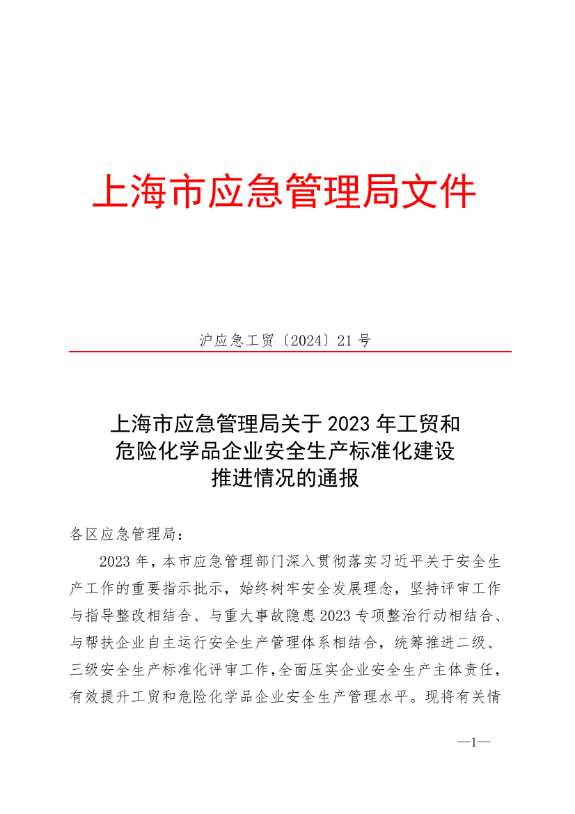 2023年,本市应急管理部门深入贯彻落实习近平关于安全生产工作的重要指示批示,始终树牢安全发展理念,坚持评审工作与指导整改相结合、与重大事故隐患2023专项整治行动相结合、与帮扶企业自主运行安全生产管理体系相结合,统筹推进二级、三级安全生产标准化评审工作,全面压实企业安全生产主体责任,有效提升工贸和危险化学品企业安全生产管理水平。现将有关情况通报如下。