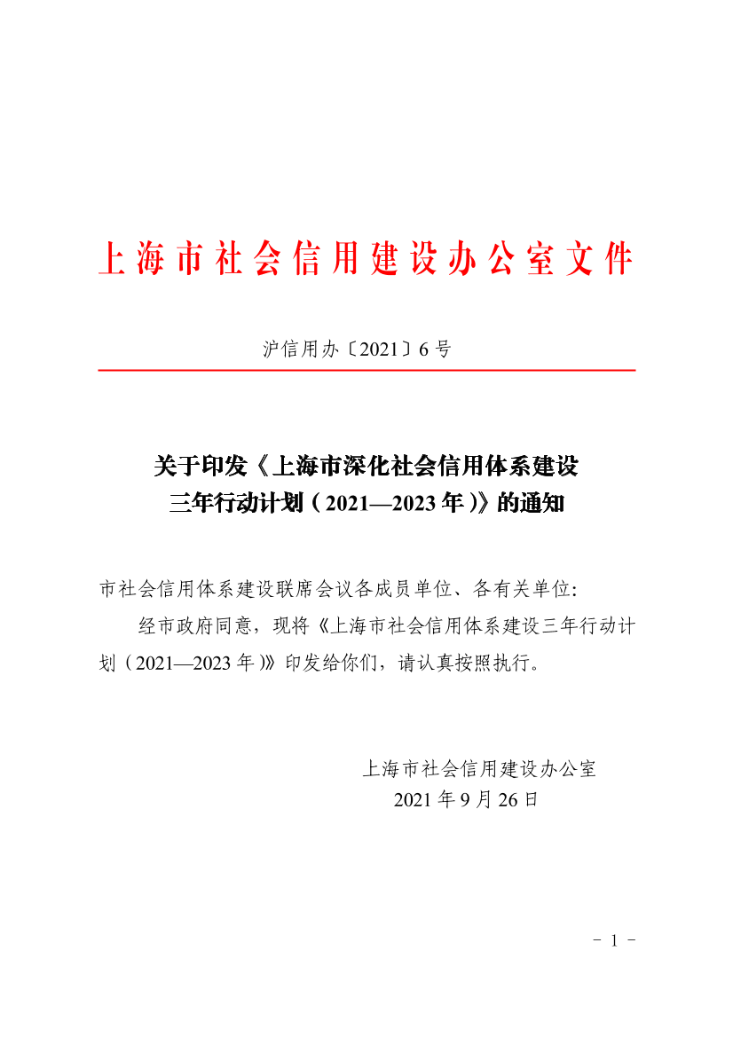 经市政府同意,现将《上海市社会信用体系建设三年行动计划(2021—2023年)》印发给你们,请认真按照执行。