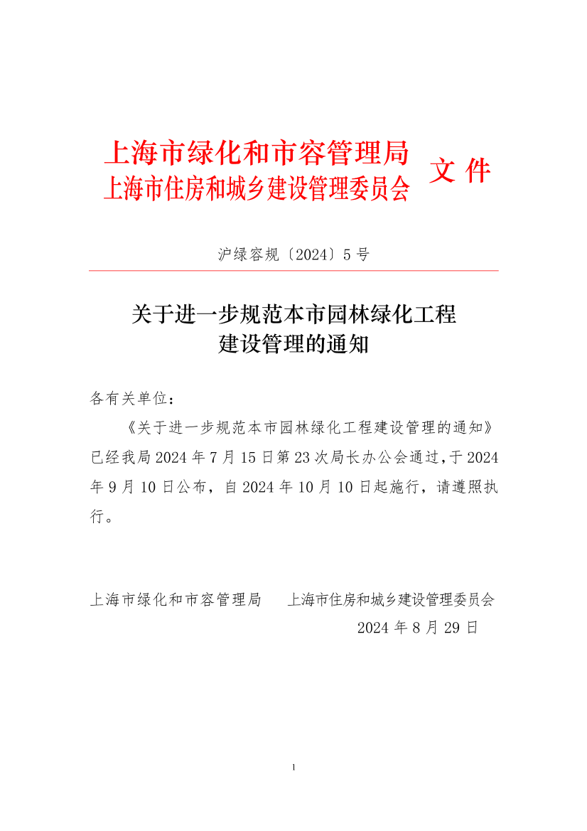 本通知自2024年10月10日起施行。原《关于进一步优化营商环境 加强本市园林绿化建设工程管理的通知》(沪绿容规〔2019〕3号)同时废止。