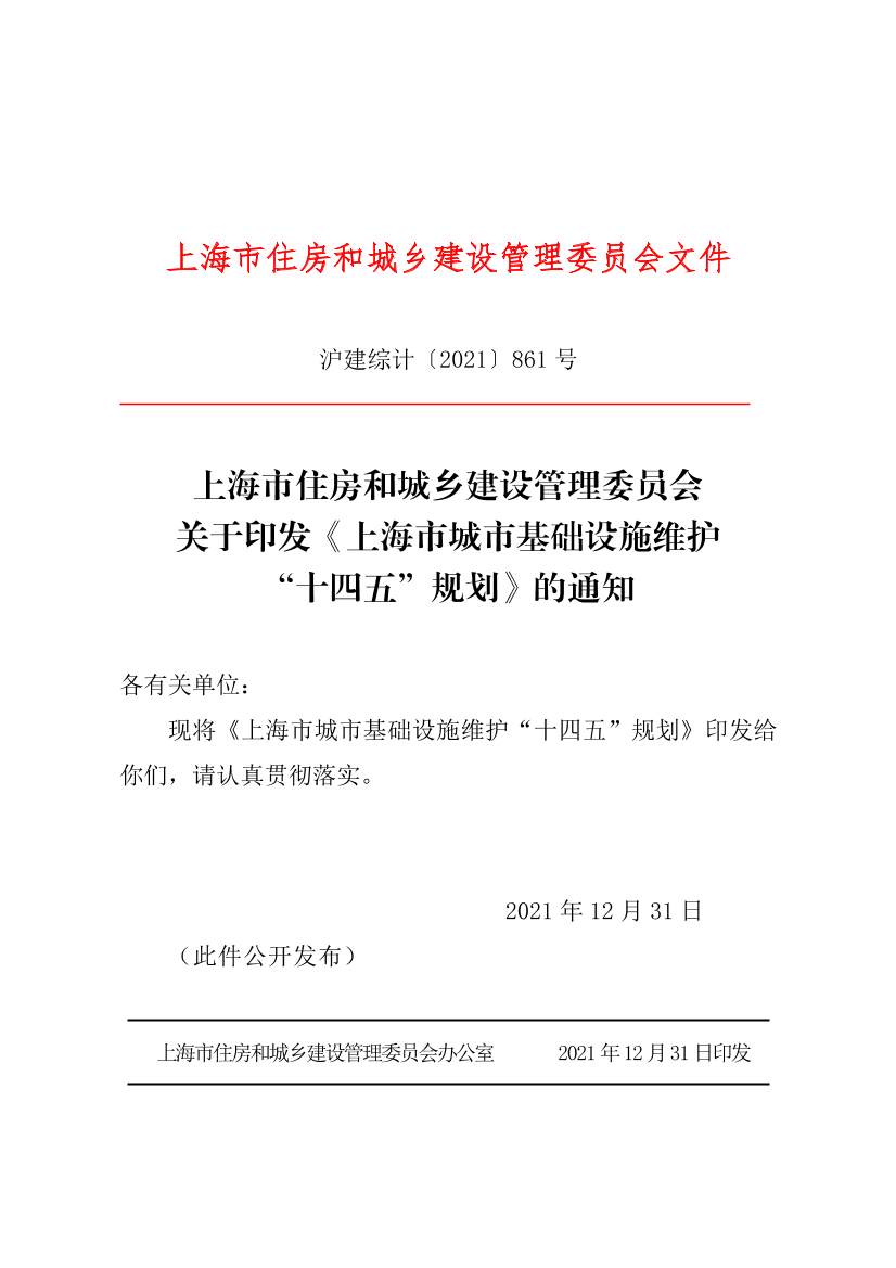 关于印发《上海市城市基础设施维护“十四五”规划》的通知