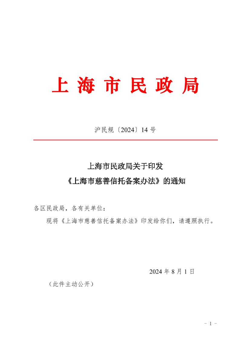 现将《上海市慈善信托备案办法》印发给你们,请遵照执行。