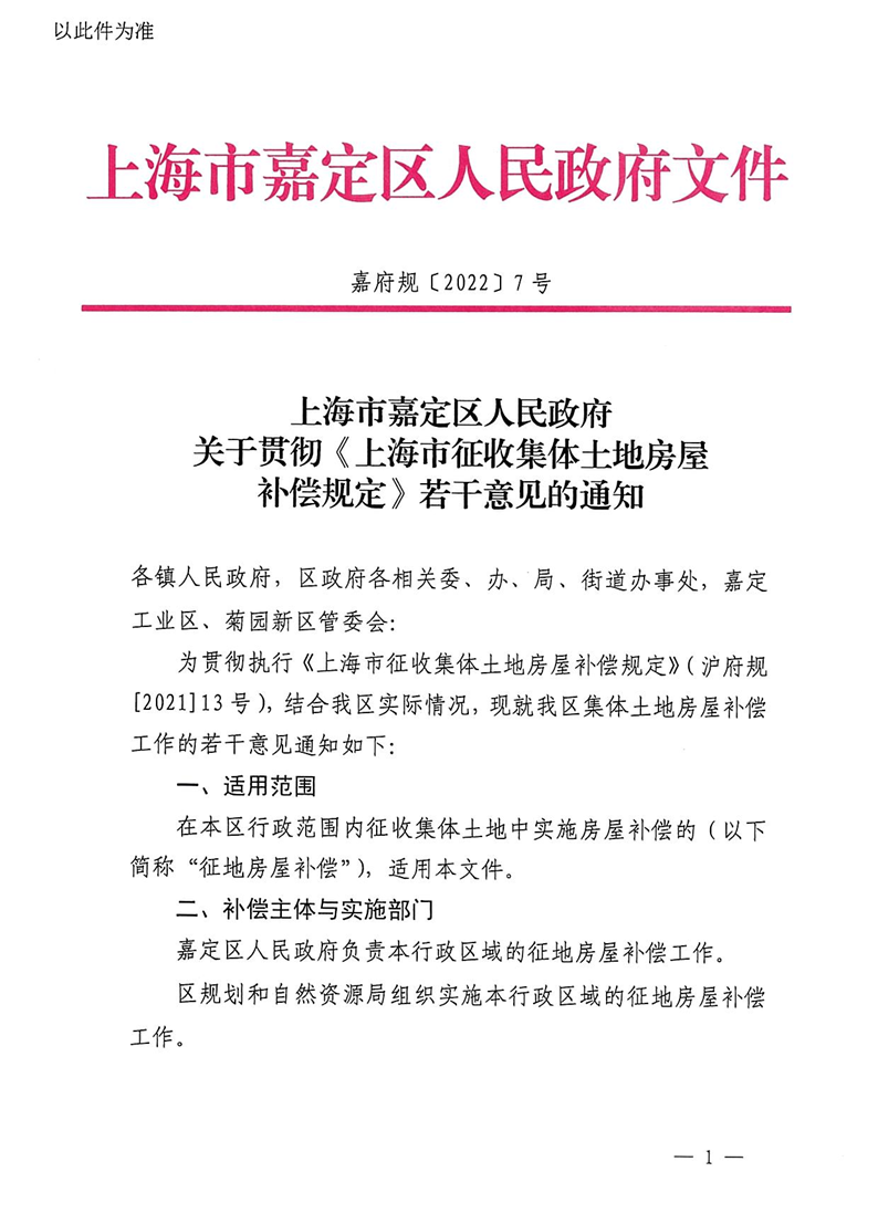 为贯彻执行《上海市征收集体土地房屋补偿规定》(沪府规[2021]13号),结合我区实际情况,现就我区集体土地房屋补偿工作的若干意见通知如下: