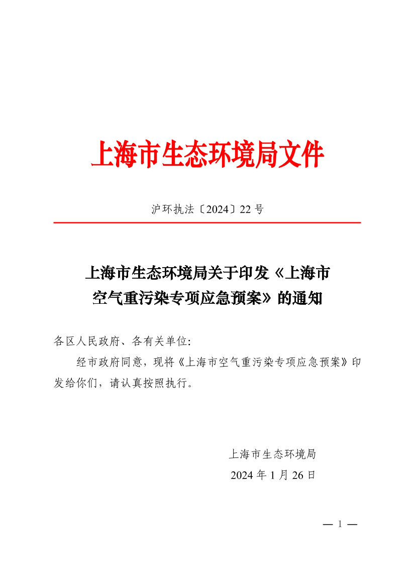 经市政府同意,现将《上海市空气重污染专项应急预案》印发给你们,请认真按照执行。