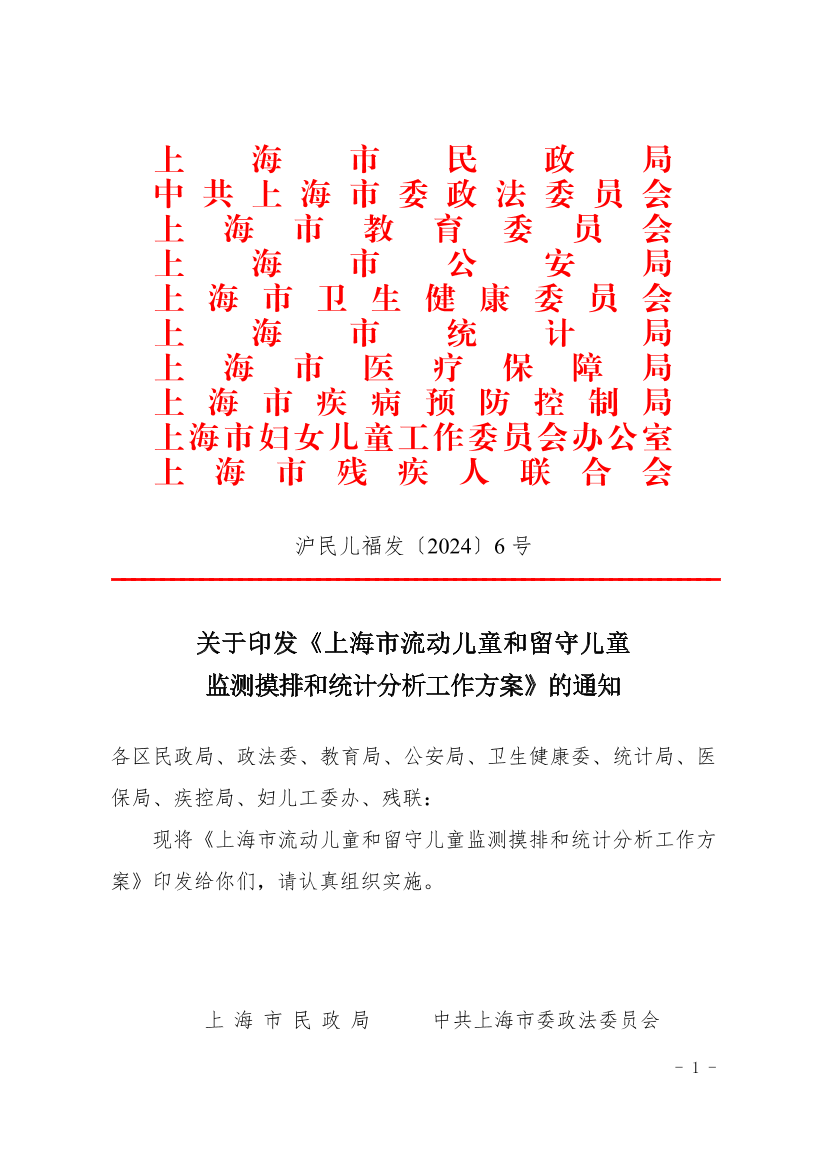 现将《上海市流动儿童和留守儿童监测摸排和统计分析工作方案》印发给你们,请认真组织实施。