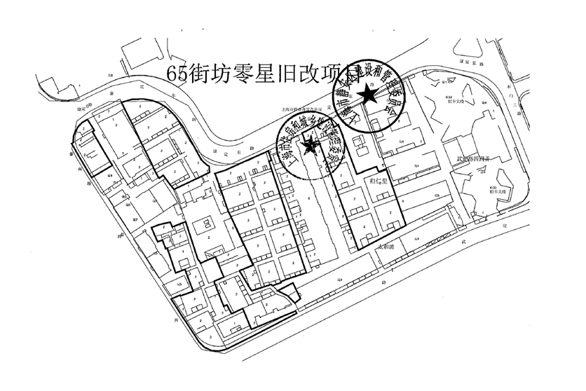 一、同意65街坊零星旧改项目列入我区旧城区改造房屋征收范围。具体房屋征收范围为东至石门二路、南至武定路、西至泰兴路、北至康定东路(其中部分)等。