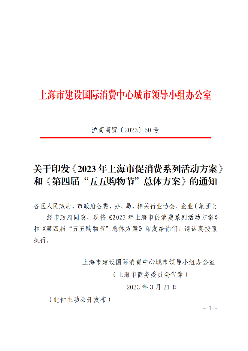 经市政府同意,现将《2023年上海市促消费系列活动方案》和《第四届“五五购物节”总体方案》印发给你们,请认真按照执行。