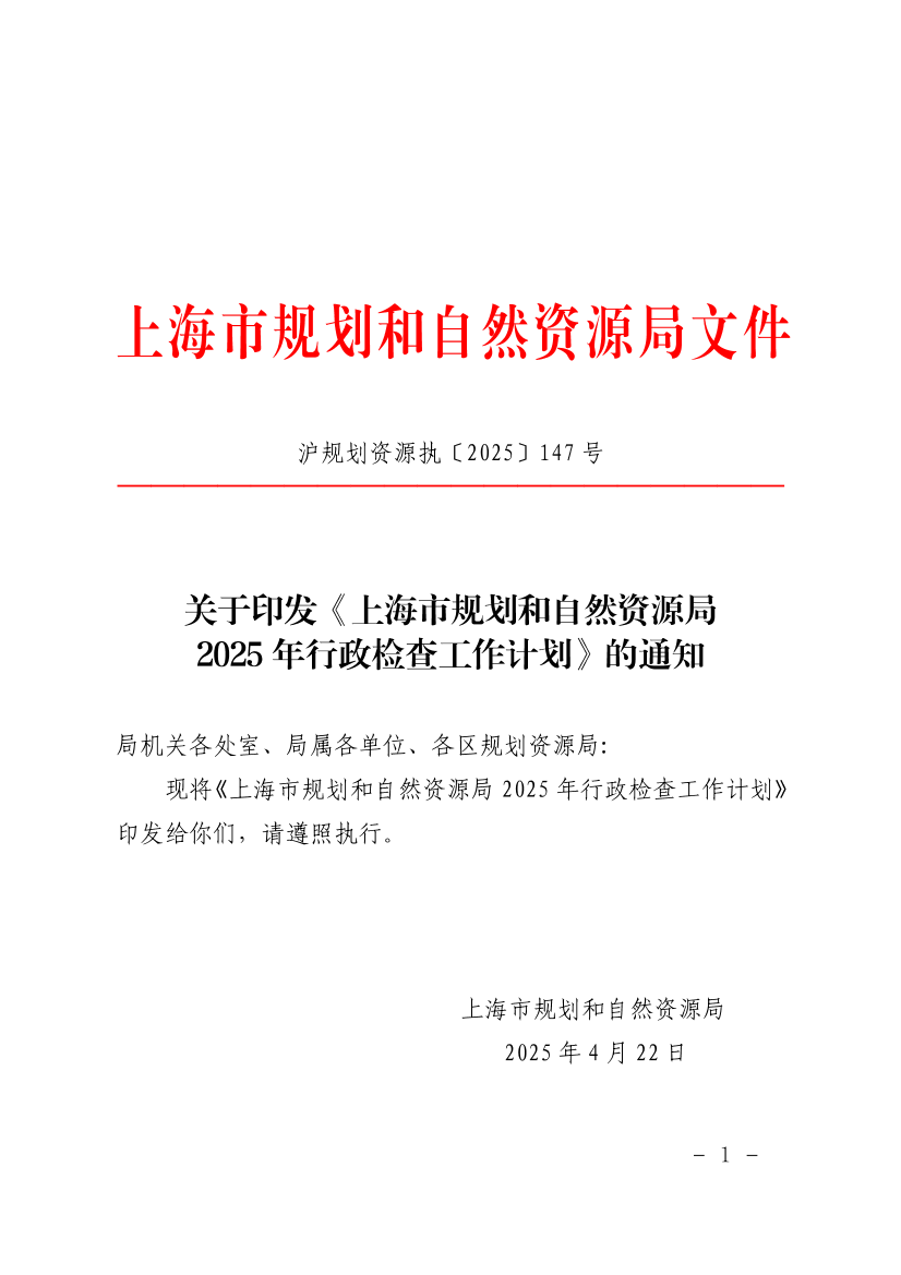 关于印发《上海市规划和自然资源局2025年行政检查工作计划》的通知