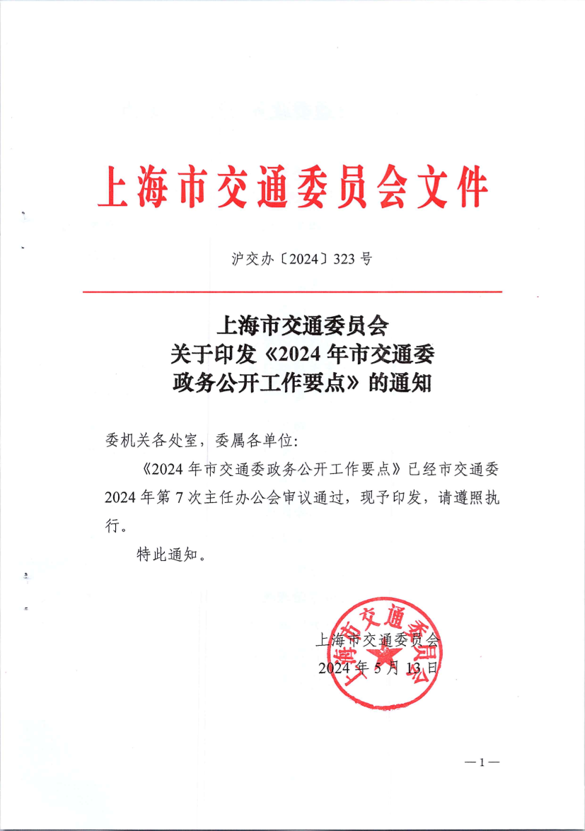 《2024年市交通委政务公开工作要点》已经市交通委2024年第7次主任办公会审议通过,现予印发,请遵照执行。