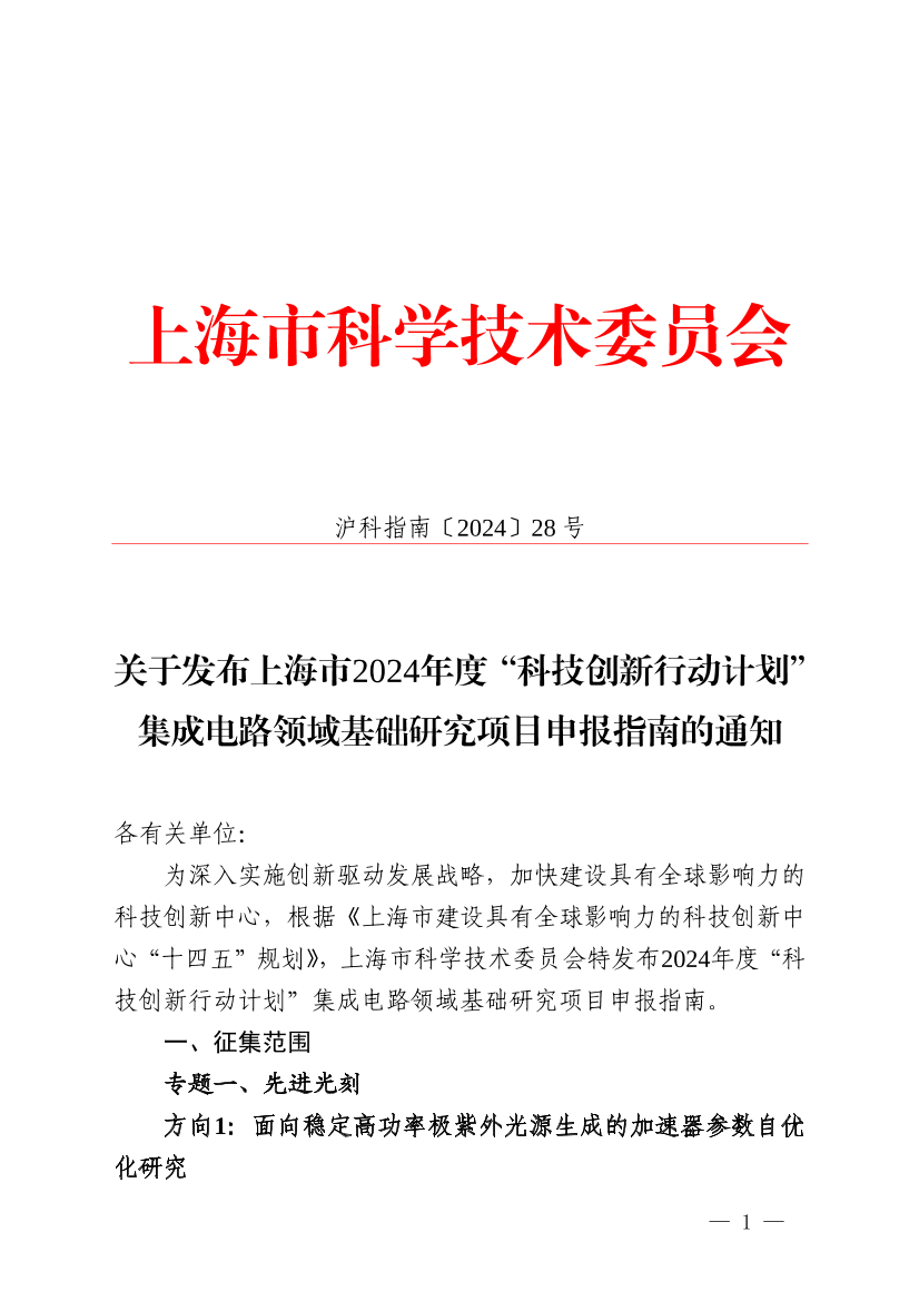 为深入实施创新驱动发展战略,加快建设具有全球影响力的科技创新中心,根据《上海市建设具有全球影响力的科技创新中心“十四五”规划》,上海市科学技术委员会特发布2024年度“科技创新行动计划”集成电路领域基础研究项目申报指南。