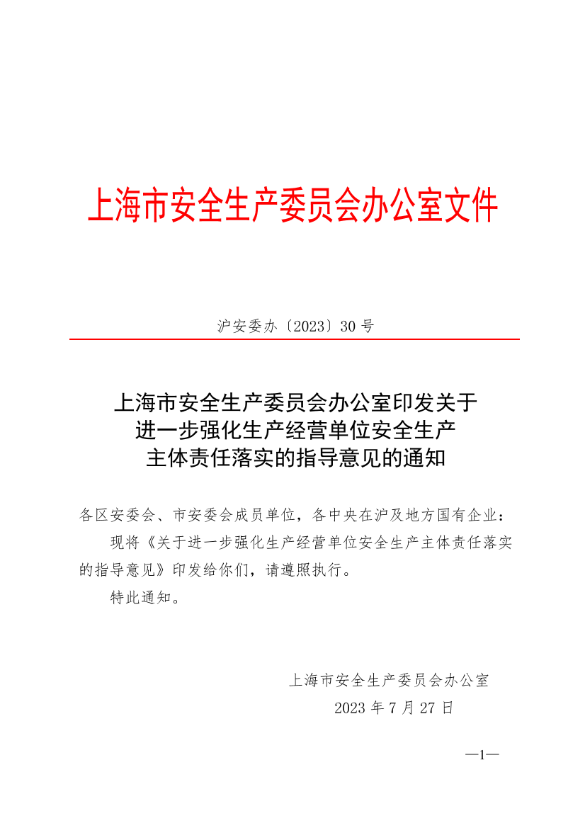 各区安委会、市安委会成员单位,各中央在沪及地方国有企业: