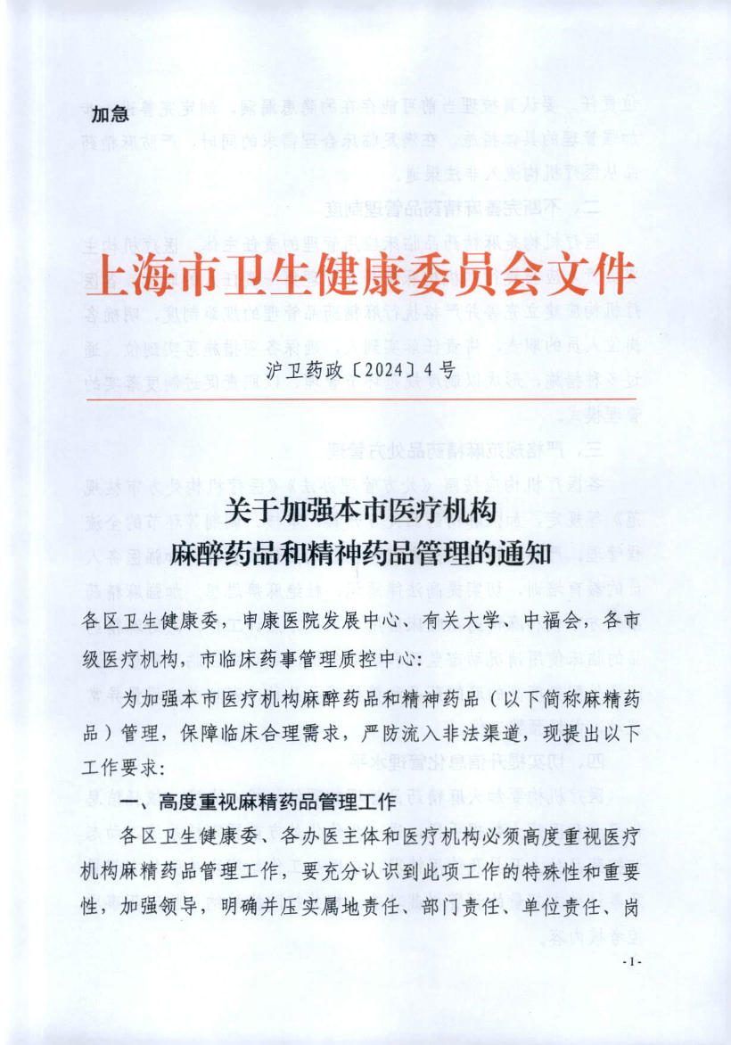 为加强本市医疗机构麻醉药品和精神药品(以下简称麻精药品)管理,保障临床合理需求,严防流入非法渠道,现提出以下工作要求: