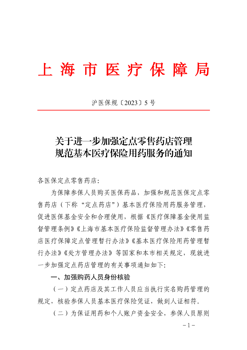 为保障参保人员购买医保药品,加强和规范医保定点零售药店(下称“定点药店”)基本医疗保险用药服务管理,促进医保基金安全和合理使用,根据《医疗保障基金使用监督管理条例》《上海市基本医疗保险监督管理办法》《零售药店医疗保障定点管理暂行办法》《基本医疗保险用药管理暂行办法》《处方管理办法》等国家和本市相关规定,现就进一步加强定点药店管理的有关事项通知如下:
