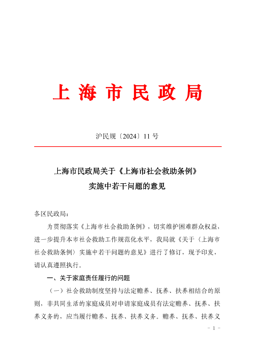 为贯彻落实《上海市社会救助条例》,切实维护困难群众权益,进一步提升本市社会救助工作规范化水平,我局就《关于〈上海市社会救助条例〉实施中若干问题的意见》进行了修订,现予印发,请认真遵照执行。