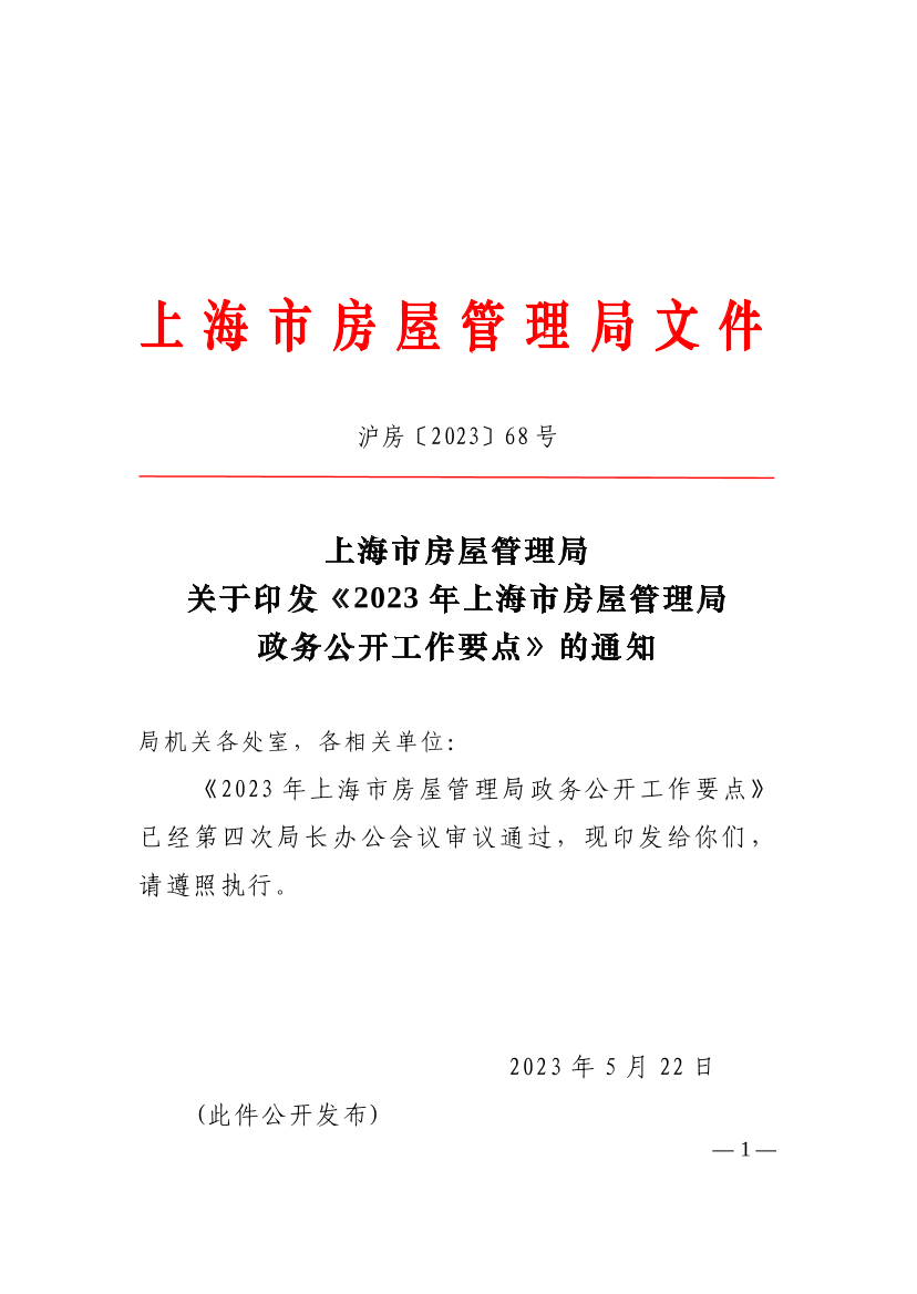 上海市房屋管理局 关于印发《2023年上海市房屋管理局政务公开工作要点》的通知