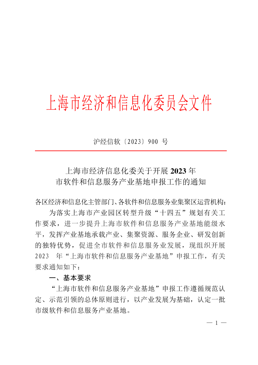 为落实上海市产业园区转型升级“十四五”规划有关工作要求,进一步提升上海市软件和信息服务产业基地能级水平,发挥产业基地承载产业、集聚资源、服务企业、研发创新的独特优势,促进全市软件和信息服务业发展,现组织开展2023年“上海市软件和信息服务产业基地”申报工作,有关要求通知如下: