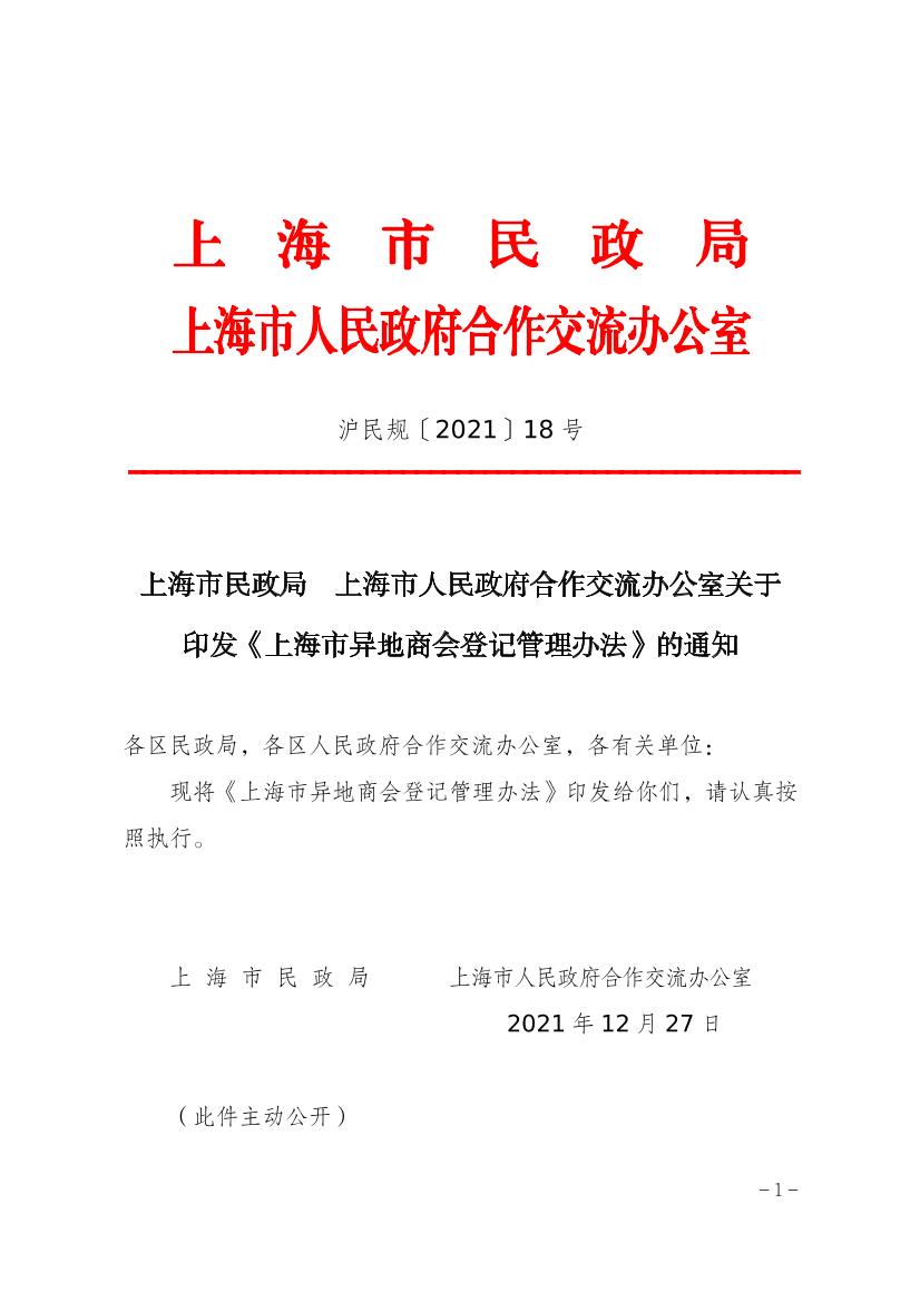 现将《上海市异地商会登记管理办法》印发给你们,请认真按照执行。