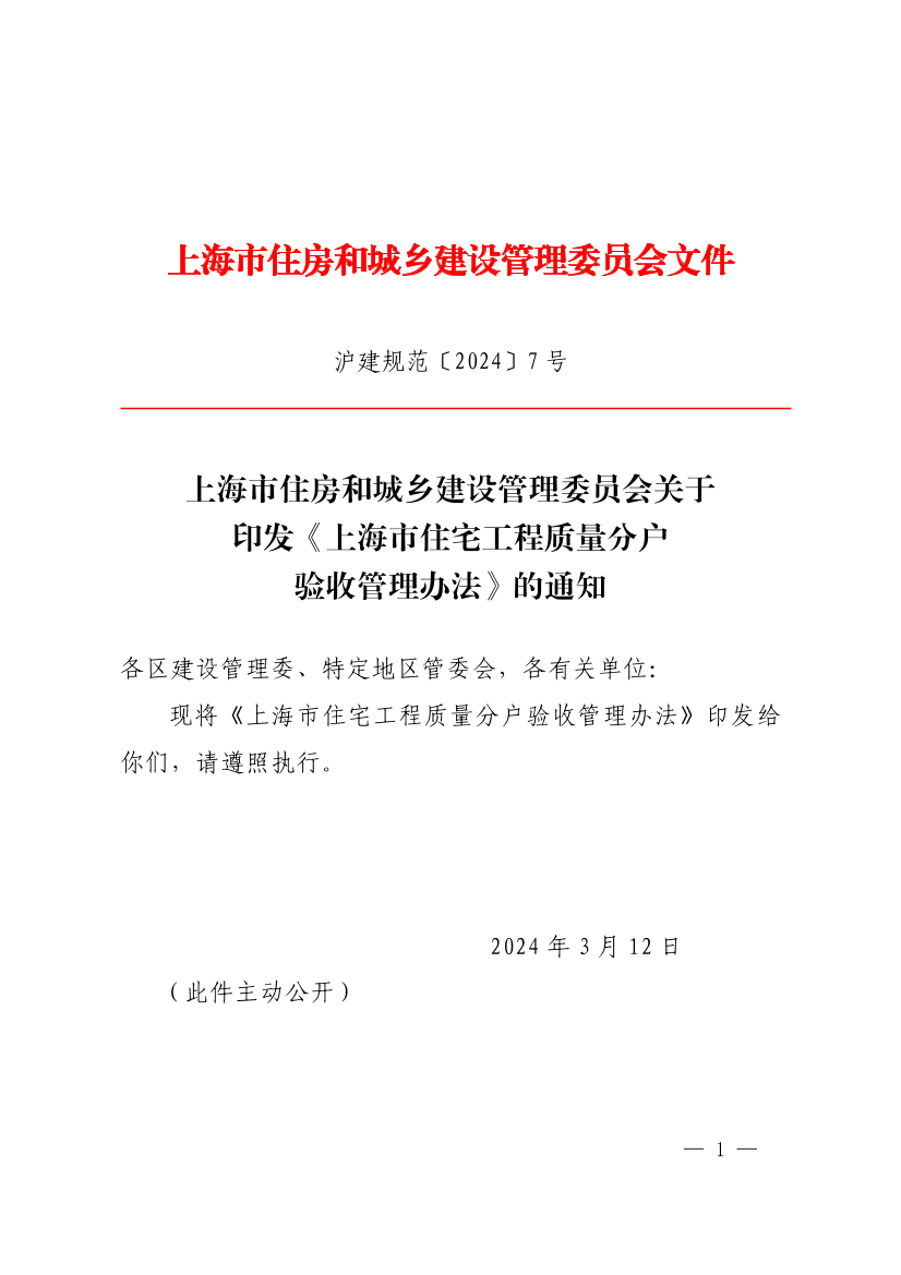 关于印发《上海市住宅工程质量分户验收管理办法》的通知