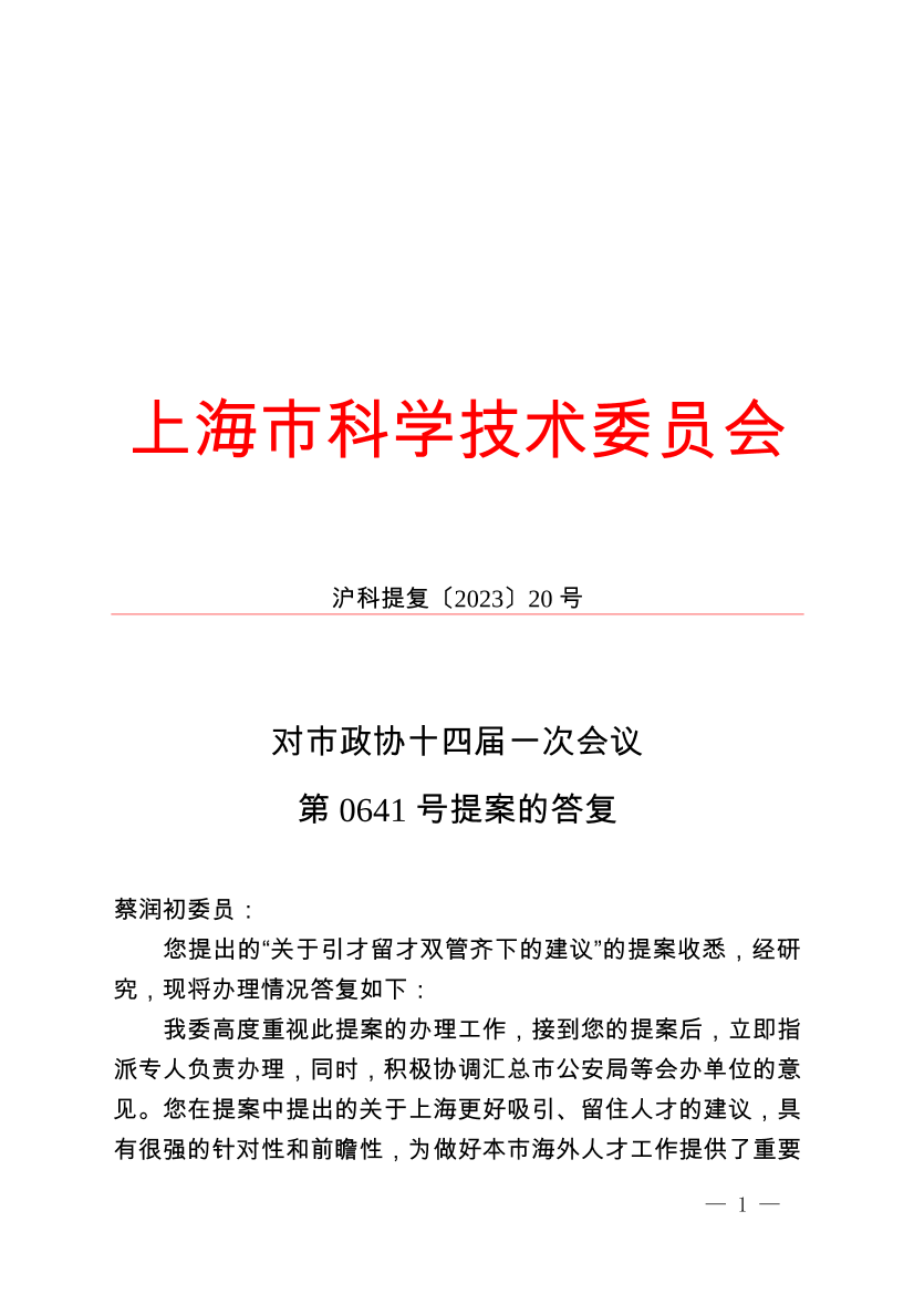 沪科提复〔2023〕20号