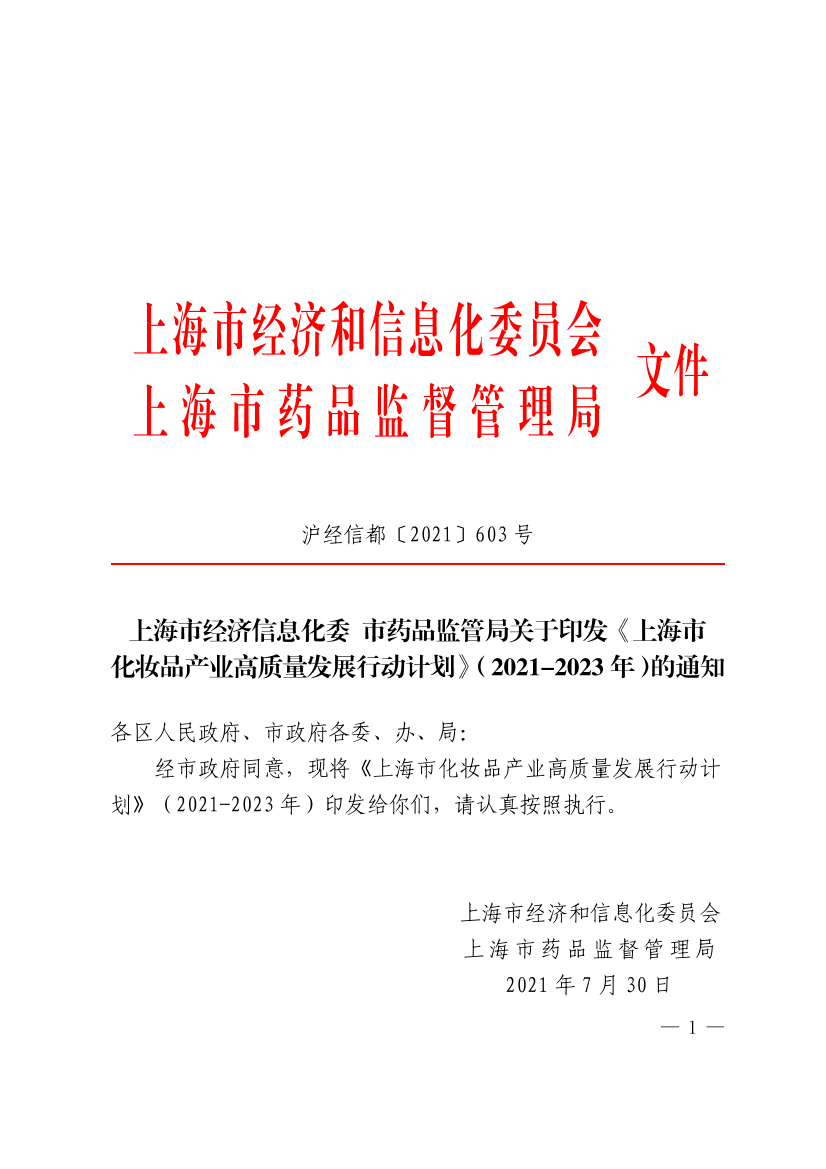 经市政府同意,现将《上海市化妆品产业高质量发展行动计划》(2021-2023年)印发给你们,请认真按照执行。