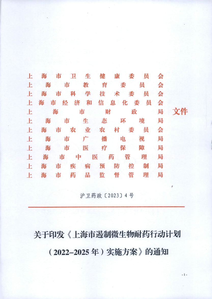 为贯彻落实《中华人民共和国生物安全法》《关于印发遏制微生物耐药国家行动计划 (2022-2025年)的通知》(国卫医函〔2022〕185号)《上海市新污染物治理行动工作方案》(沪府办规〔2023〕3号)要求,遏制微生物耐药,更好地保护人民健康,结合本市实际,制定本实施方案。