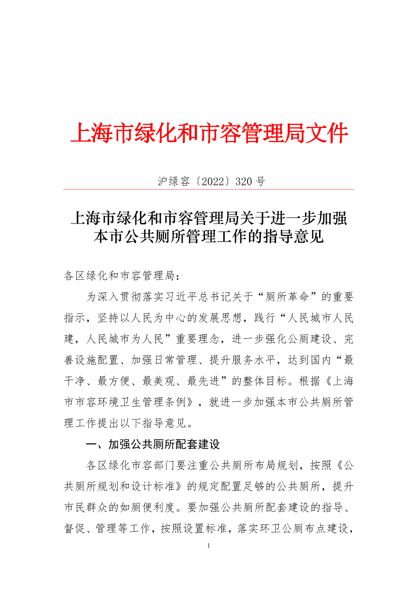 为深入贯彻落实习近平总书记关于“厕所革命”的重要指示,坚持以人民为中心的发展思想,践行“人民城市人民建,人民城市为人民”重要理念,进一步强化公厕建设、完善设施配置、加强日常管理、提升服务水平,达到国内“最干净、最方便、最美观、最先进”的整体目标。根据《上海市市容环境卫生管理条例》,就进一步加强本市公共厕所管理工作提出以下指导意见。