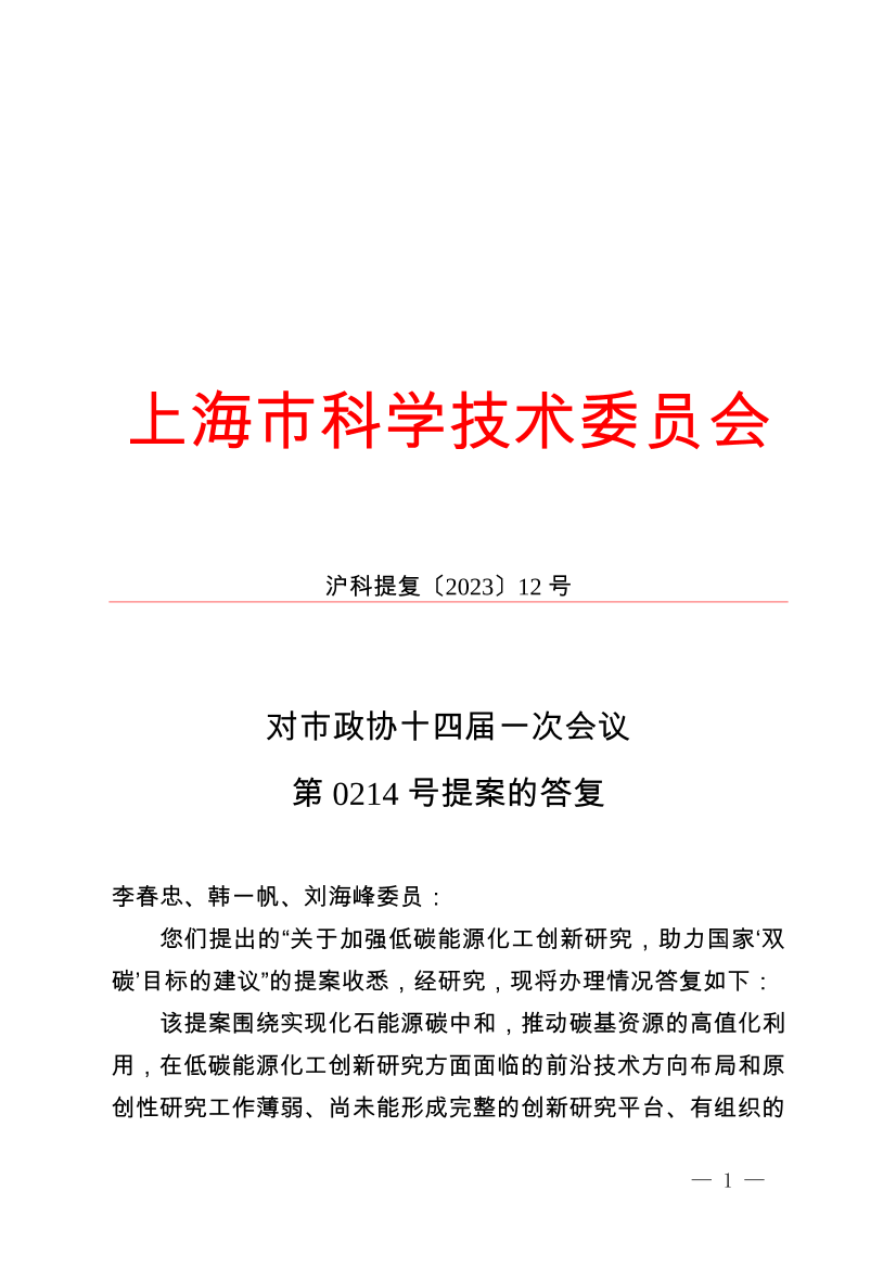 关于提案中提到的建议二:将低碳能源化工纳入上海市重点支持和发展计划。服务国家和上海双碳目标的实现,低碳能源化工技术的发展一直是双碳领域的重点关注和支持的方向之一。围绕低碳能源领域的科创基地平台建设和发展,我市2018年就启动了“低碳技术创新功能型平台”建设,平台专注于低碳研发产业共性关键技术,着力构建能源催化材料研发与评价、能源材料与反应装备的中试放大、工程化验证等核心服务能力,建成低碳技术服务支撑体系,打通低碳技术工程化研发整个链条,实现从催化剂或能源材料绿色制造、概念验证、反应装备运行优化、工程化仿真模拟到产业化应用。并基本建成了能源材料构效与表征平台、高通量快速评价系统和概念验证平台、光热电与储能制氢工程验证平台、功能材料绿色3D智造平台、碳中和应用场景技术解决方案平台等一系列双碳领域的科创基地,打通低碳科技成果转化的“最后一公里”,输出核心技术与解决方案。组建绿色低碳产业联盟,成员单位涉及本市节能事业单位、科研院所、高校、低碳、零碳高端技术装备龙头企业、集团公司、重点园区、金融机构等40余个单位,打造覆盖全产业链的交流合作平台,推进绿色低碳产业的技术进步和商业化、规模化发展。
