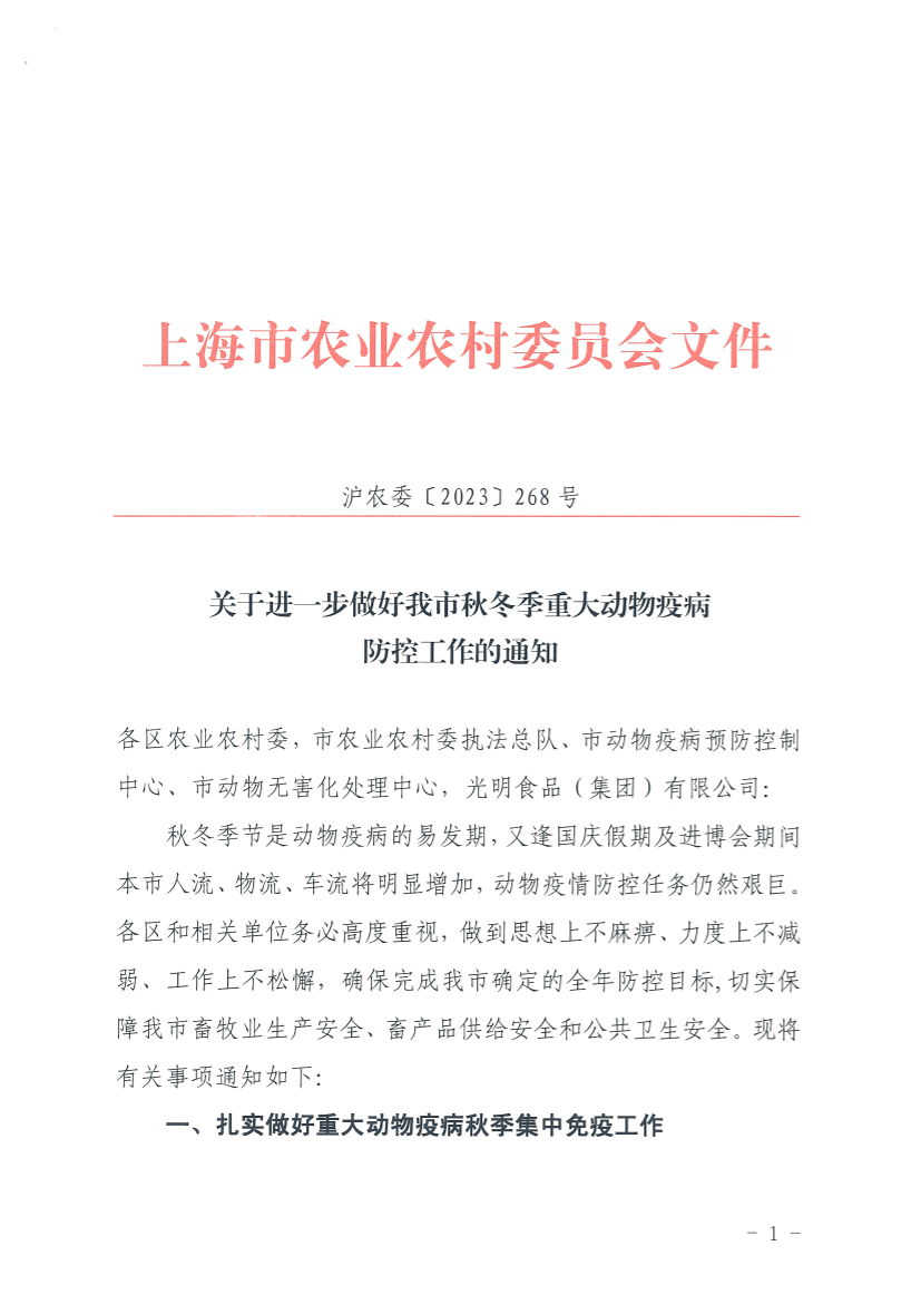 各区农业农村委,市农业农村委执法总队、市动物疫病预防控制中心、市动物无害化处理中心,光明食品(集团)有限公司: