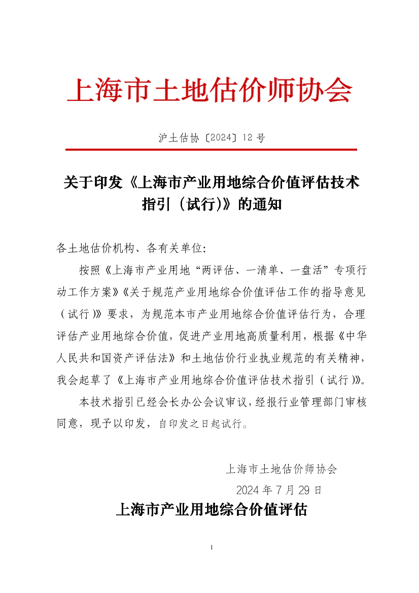 关于印发《上海市产业用地综合价值评估技术指引(试行)》的通知