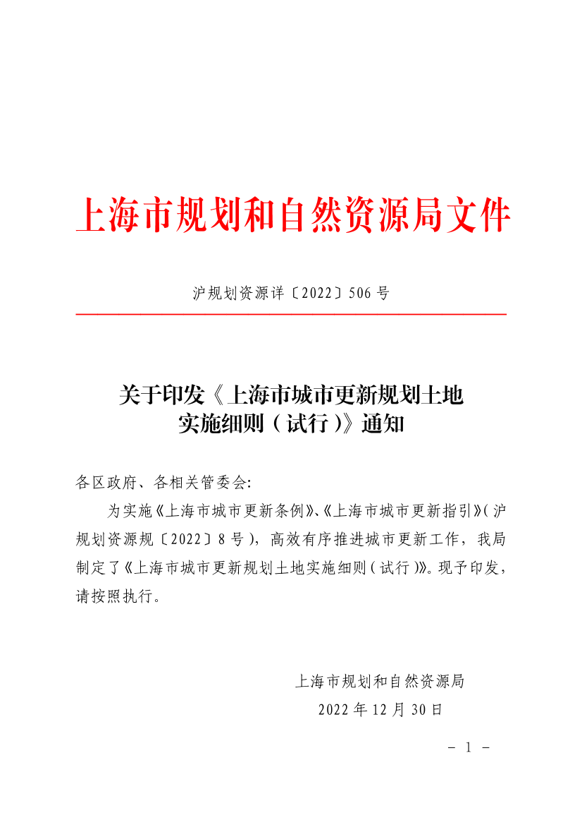关于印发《上海市城市更新规划土地实施细则(试行)》通知