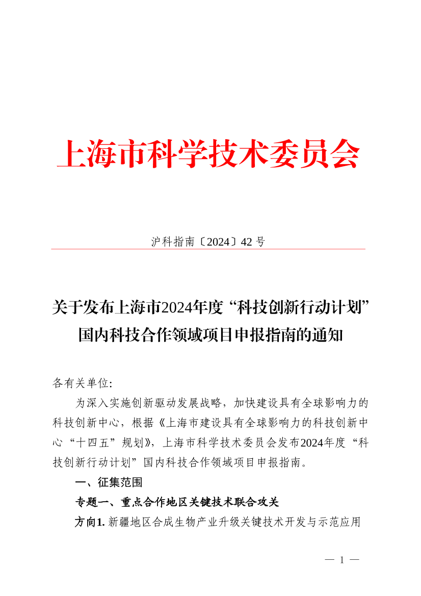为深入实施创新驱动发展战略,加快建设具有全球影响力的科技创新中心,根据《上海市建设具有全球影响力的科技创新中心“十四五”规划》,上海市科学技术委员会发布2024年度“科技创新行动计划”国内科技合作领域项目申报指南。