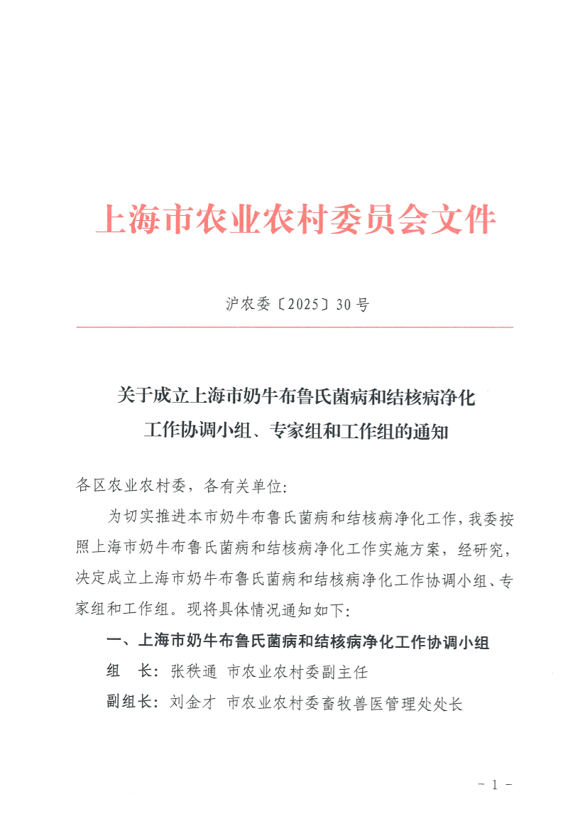 一、上海市奶牛布鲁氏菌病和结核病净化工作协调小组