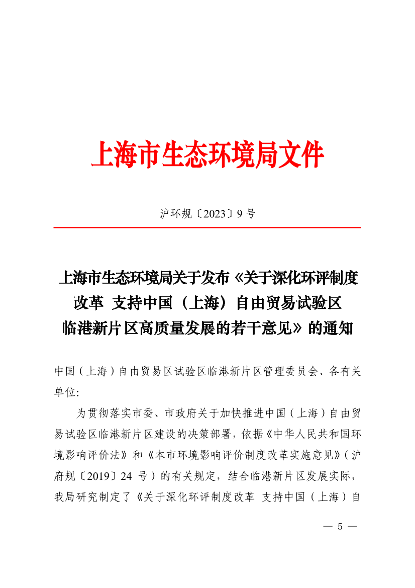 为贯彻落实市委、市政府关于加快推进中国(上海)自由贸易试验区临港新片区建设的决策部署,依据《中华人民共和国环境影响评价法》和《本市环境影响评价制度改革实施意见》(沪府规〔2019〕24号)的有关规定,结合临港新片区发展实际,我局研究制定了《关于深化环评制度改革 支持中国(上海)自由贸易试验区临港新片区高质量发展的若干意见》,现印发给你们,请认真按照执行。