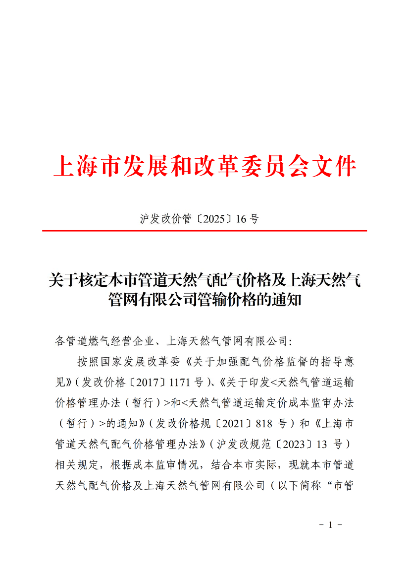 按照国家发展改革委《关于加强配气价格监督的指导意见》(发改价格〔2017〕1171号)、《关于印发<天然气管道运输价格管理办法(暂行)>和<天然气管道运输定价成本监审办法(暂行)>的通知》(发改价格规〔2021〕818号)和《上海市管道天然气配气价格管理办法》(沪发改规范〔2023〕13号)相关规定,根据成本监审情况,结合本市实际,现就本市管道天然气配气价格及上海天然气管网有限公司(以下简称“市管网公司”)管输价格等有关事项通知如下:
