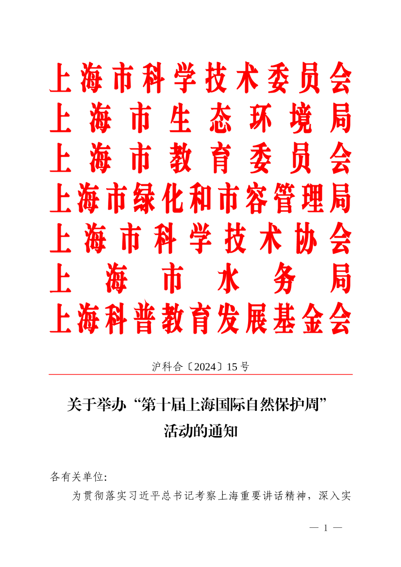 请各有关单位高度重视、结合自身特色和工作实际,开展形式多样、内容丰富的科普活动,积极引导公众参与“第十届上海国际自然保护周”相关活动。