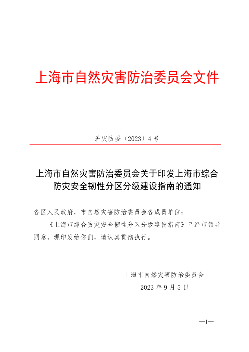 《上海市综合防灾安全韧性分区分级建设指南》已经市领导同意,现印发给你们,请认真贯彻执行。