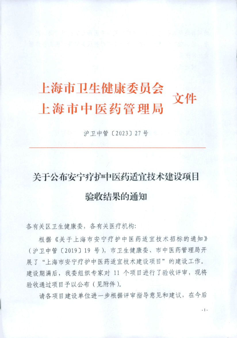 请各项目建设单位进一步根据评审指导意见和建议,在今后的项目运用、改进及推广过程中发挥中医药适宜技术“简、便、廉、验、效”的特点,推进本市安宁疗护服务发展,提高临终患者生命质量。