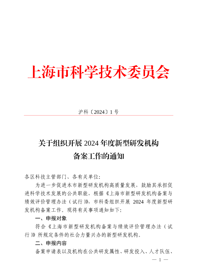 为进一步促进本市新型研发机构高质量发展,鼓励其承担促进科学技术发展的公共职能,根据《上海市新型研发机构备案与绩效评价管理办法(试行)》,市科委组织开展2024年度新型研发机构备案工作。现将有关事项通知如下: