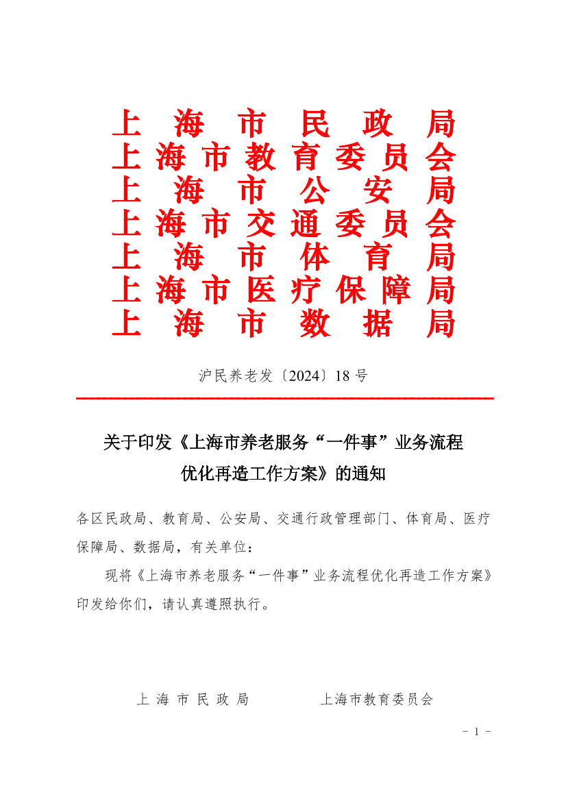 上海市养老服务“一件事”业务流程优化再造工作方案