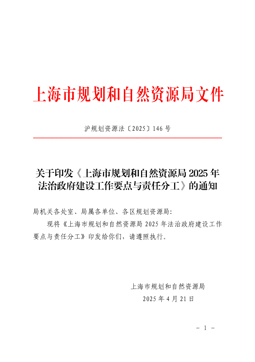 关于印发《上海市规划和自然资源局2025年法治政府建设工作要点与责任分工》的通知