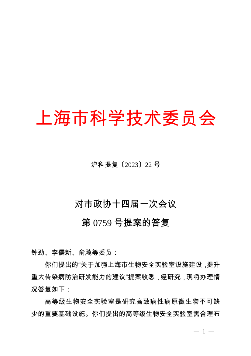 高等级生物安全实验室是研究高致病性病原微生物不可缺少的重要基础设施。你们提出的高等级生物安全实验室需合理布局,疏通建设堵点,鼓励对外开放等建议具有很强的针对性,为进一步加强上海高等级生物安全实验室建设工作,更好发挥其在重大传染病相关药物研发等科技攻关以及疫情防控的支撑保障作用,具有重要借鉴意义。