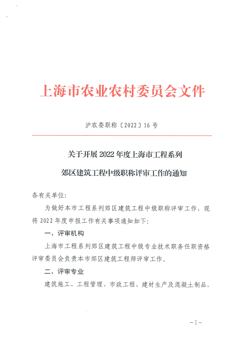 为做好本市工程系列郊区建筑工程中级职称评审工作,现将2022年度申报工作有关事项通知如下: