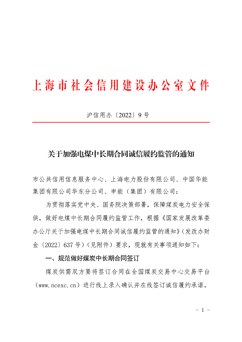 为贯彻落实党中央、国务院决策部署,保障煤炭电力安全保供,做好电煤中长期合同履约监管工作,根据《国家发展改革委办公厅关于加强电煤中长期合同诚信履约监管的通知》(发改办财金〔2022〕637号)(见附件)要求,现就有关事项通知如下: