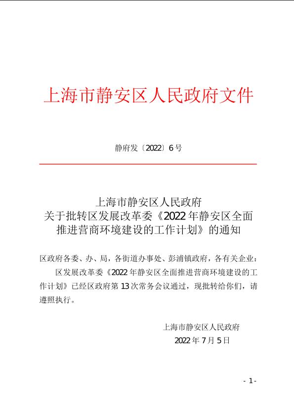 区发展改革委《2022年静安区全面推进营商环境建设的工作计划》已经区政府第13次常务会议通过,现批转给你们,请遵照执行。