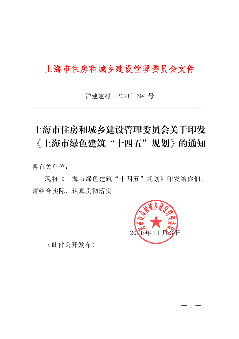 关于印发《上海市绿色建筑“十四五”规划》的通知
