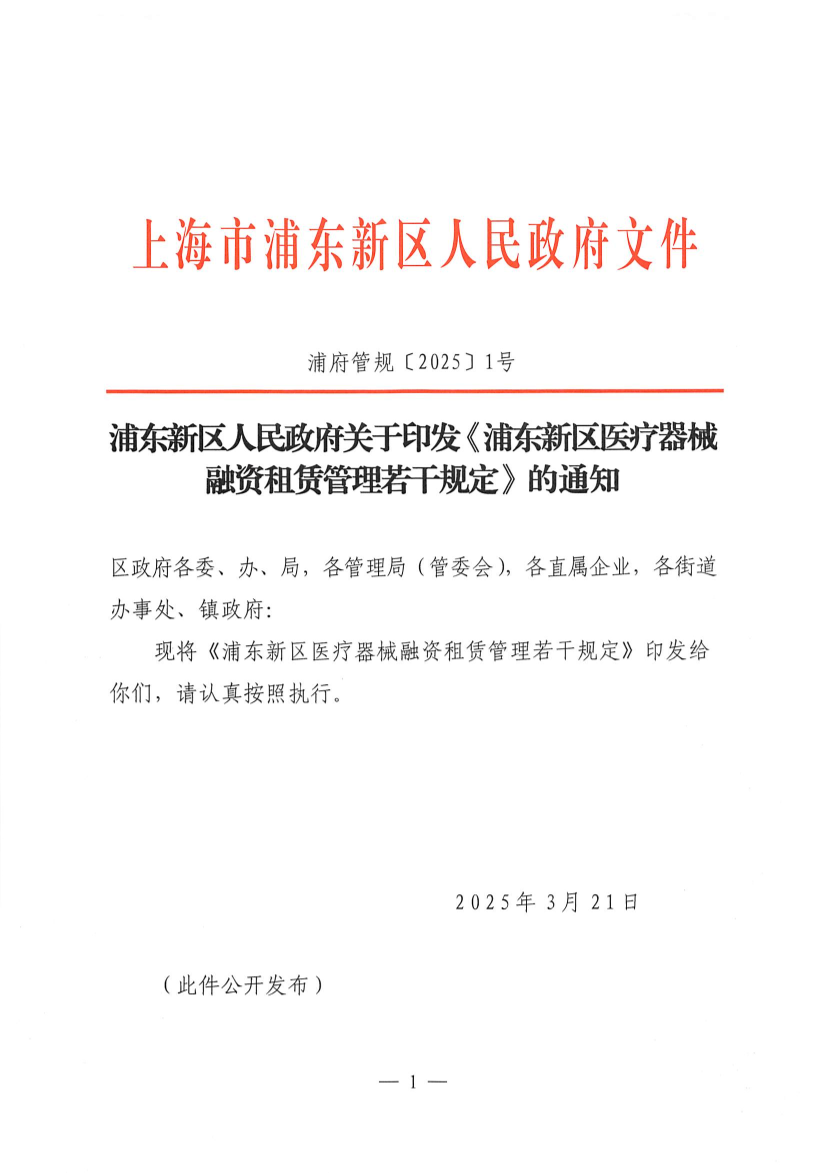 现将《浦东新区医疗器械融资租赁管理若干规定》印发给你们,请认真按照执行。