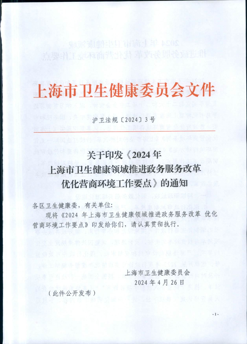 2024年上海市卫生健康领域推进政务服务改革 优化营商环境工作要点