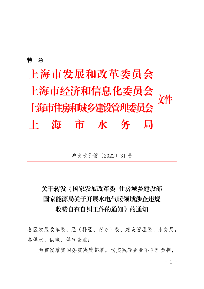 附件:《国家发展改革委 住房城乡建设部 国家能源局关于开展水电气暖领域涉企违规收费自查自纠工作的通知》(发改价格〔2022〕1116号)