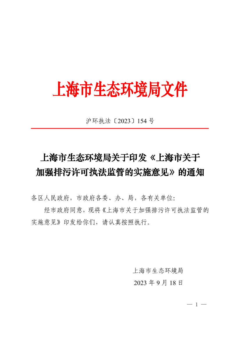 经市政府同意,现将《上海市关于加强排污许可执法监管的实施意见》印发给你们,请认真按照执行。