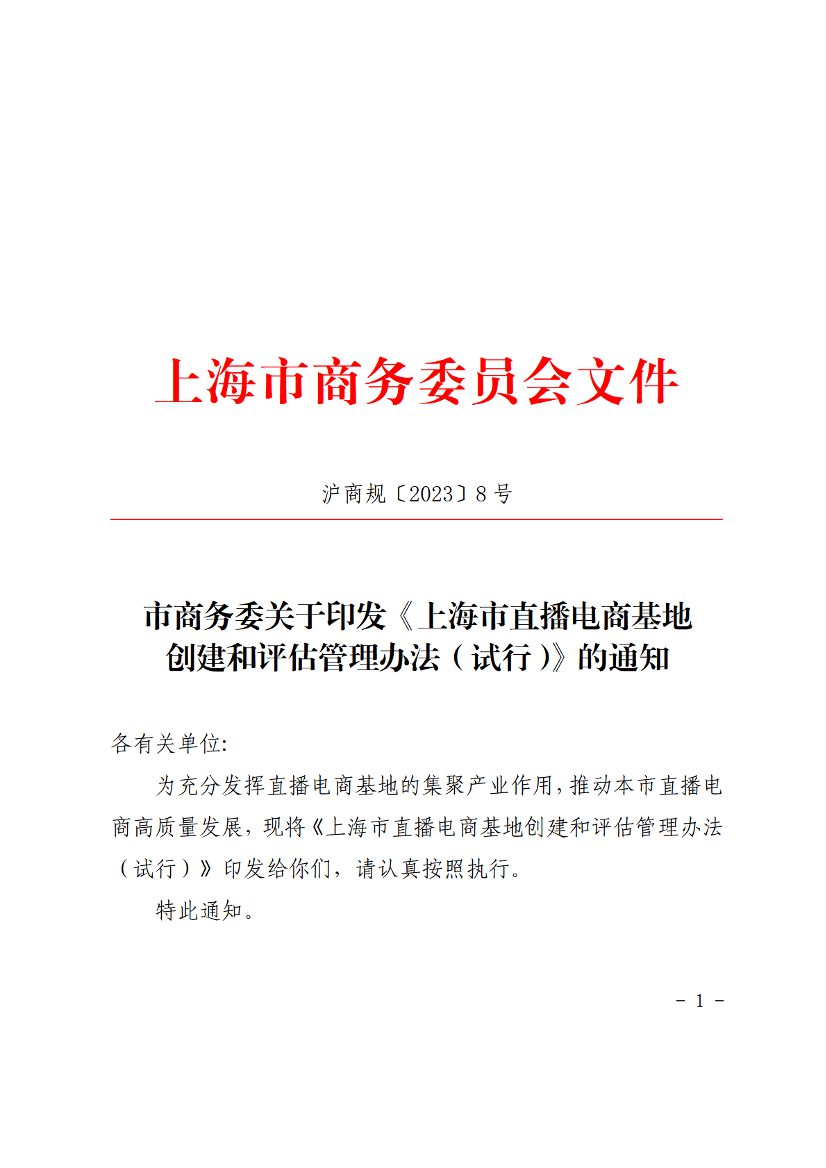 为充分发挥直播电商基地的集聚产业作用,推动本市直播电商高质量发展,现将《上海市直播电商基地创建和评估管理办法(试行)》印发给你们,请认真按照执行。