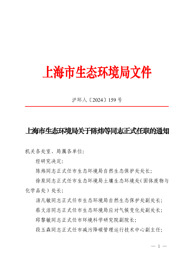 陈炜同志正式任市生态环境局自然生态保护处处长;
